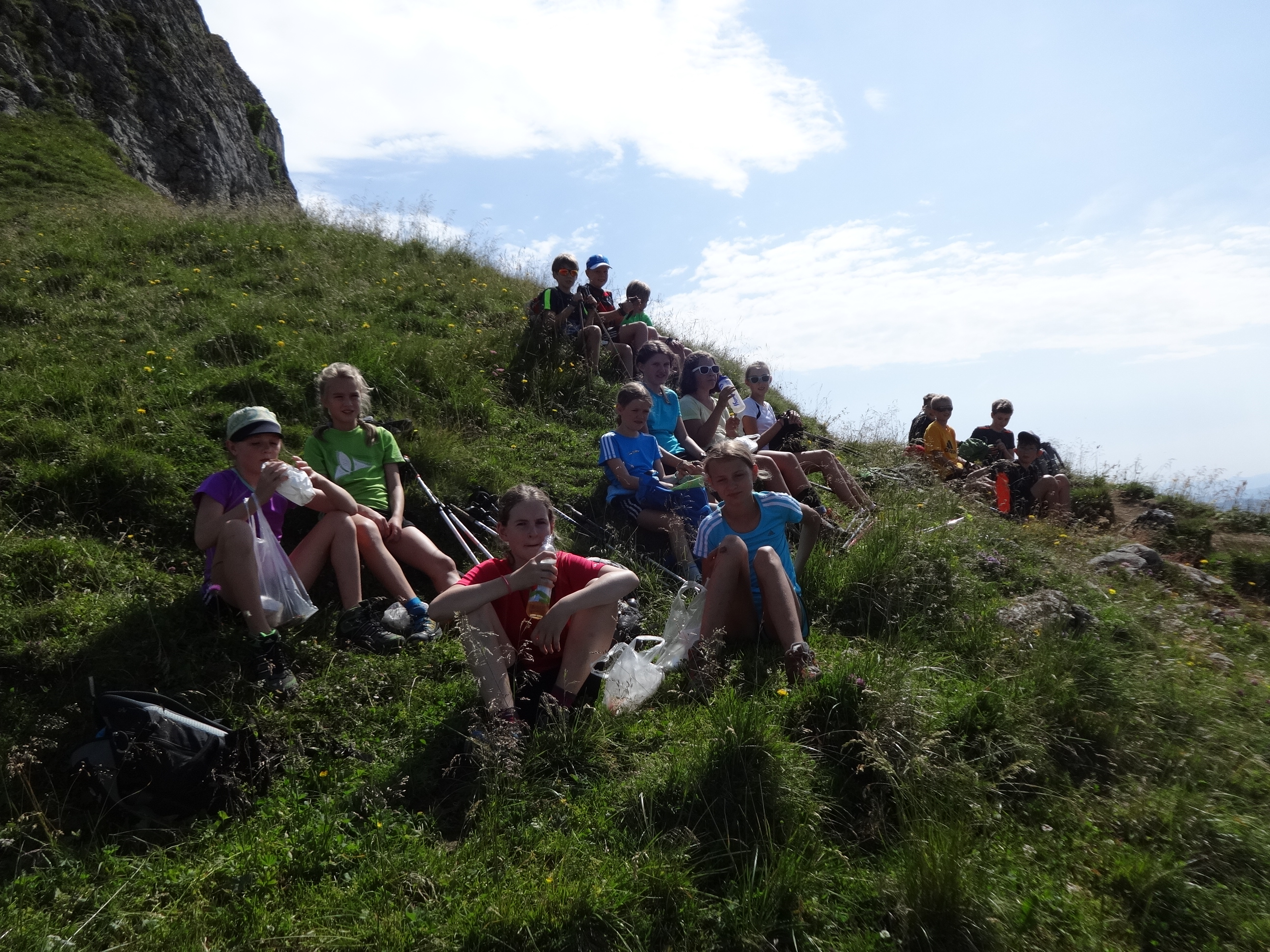 Am 2. Tag ging es für die älteren Jahrgänge schon um 7 Uhr mit dem Bus zum Einstieg des Che Gevara Klettersteigs. Vor uns lagen 1300hm, die überwunden werden mussten. Nach 45 Minuten legten wir den ersten kleinen Stopp ein, um unser Klettersteigset anzulegen. Danach ging es mit dem Klettersteig in der Ostwand los. Zwischenzeitlich wurden kurze Trinkpausen eingelegt, da kurz vor Mittag die Sonne schon ordentlich runterbrannte. Nach fünf Stunden Gehzeit, haben alle den Gipfel erreicht, wo ordentlich gebrotzeitelt wurde. Nun stand "nur noch" ein drei Stunden langer Abstieg bevor. Am Campingplatz angekommen wurde schon mit den Vorbereitungen fürs Mittagessen begonnen, jeder half sofort mit, da alle Rießenhunger mitbrachten. Mit einer kurzen Abkühlung in der Sarcé beendeten wir diesen Trainingstag.Die U14er standen im Pensum der U16er + Jugend in keinster Weise hinterher und begaben sich ab 7:30h auf den Weg den Cima Capi zu besteigen mit einem zweiten Gipelanstieg Cima Rocca, wo man durch viele Tunnel und Höhlen nur mit Stirnlampe durch kommt - ansonsten wäre es finstere Nacht.